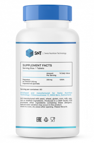 Magnesium Glycinate - это препарат магния, который обладает высокой биодоступностью и хорошо переносится организмом. Дополнительный прием поможет вам нормализовать сердечный ритм, снизить АД, купировать судороги в мышцах, повысить жизненный тонус и настроение, умственную и физическую активность, уменьшить боли в суставах.